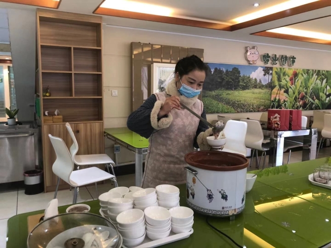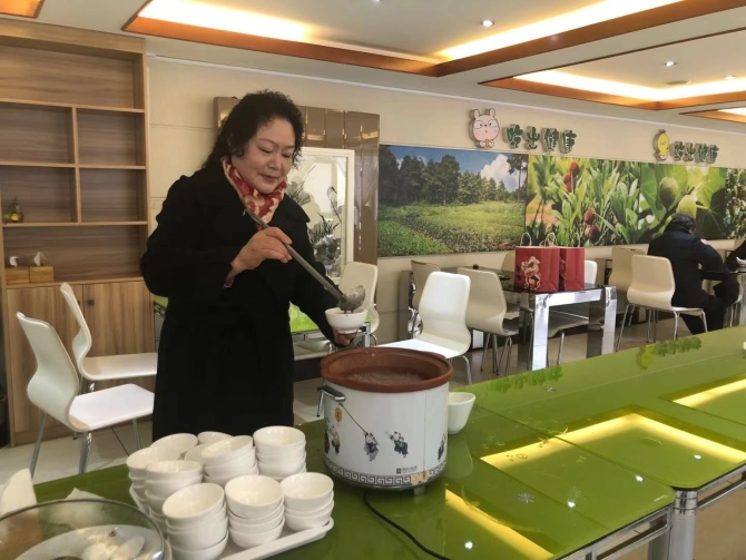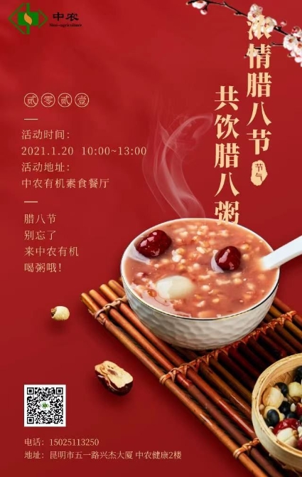 上午十点,中农有机素食餐厅的工作人员精心熬制刚刚出锅的美味腊八粥放到桌上,供来店的客人食用。中农有机为打造世界一流“绿色食品牌”, 腊八粥所有的配料都是选用有机食材。活动现场,昆明市中如农业科技有限公司和多柏思食品有限公司的人员欢聚于此,共饮腊八粥。