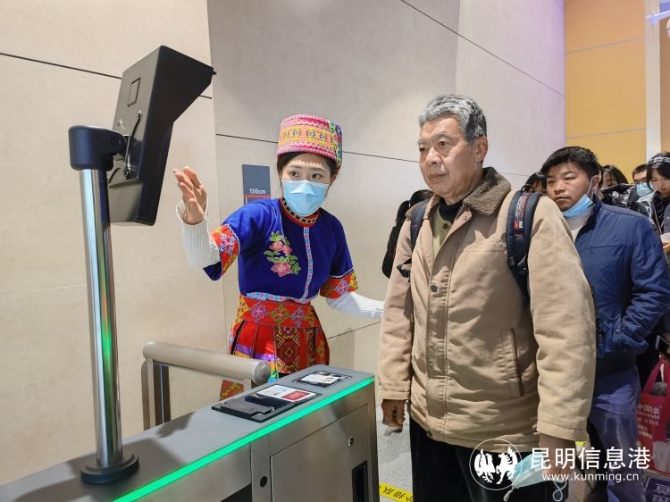 在各车站配置自助检票终端、人脸对比系统、自助核验闸机等智能设备933台;在昆明、昆明南、曲靖北、富源北等22个车站的136台自动售取票设备加装港澳台证件识读设备,同时对35个车站的220台设备完成电子旅行证件自动识读功能升级,持可识读证件的港澳台旅客可实现自助购票乘车。在昆明南至玉溪间C、D字头始发终到动车组列车,昆(明)曲(靖)宣(威)城际动车,正式开通“铁路e卡通”扫码乘车业务。旅客通过“铁路e卡通”乘坐动车,可通过二代身份证原件、手机扫码快速进站乘车。