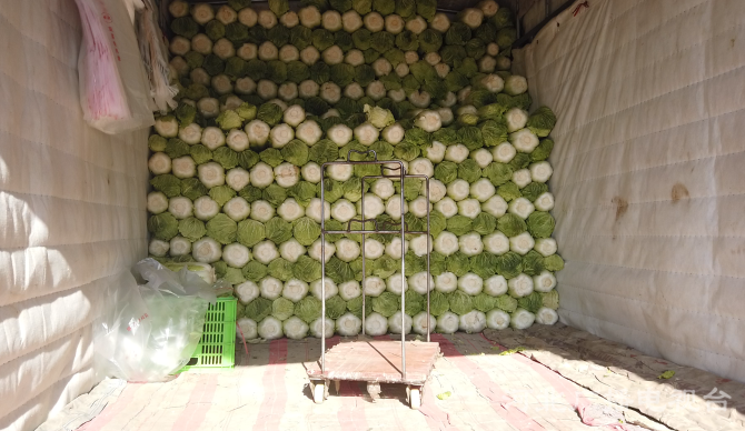 又一车白菜,到场不多时就被采购空了多半个车厢。