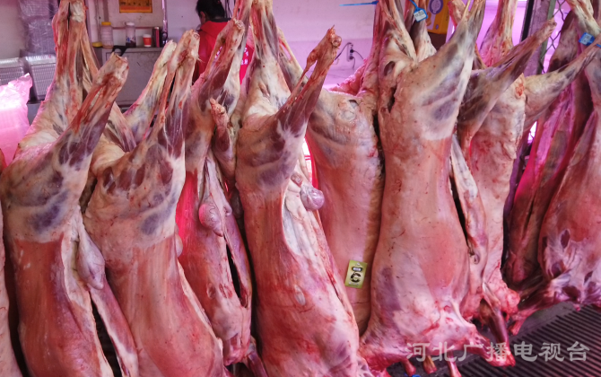 市场新挂出的内蒙整羊,老板说每日到货每日售罄,均为整只售卖,也有散客拼团采购,供不应求。