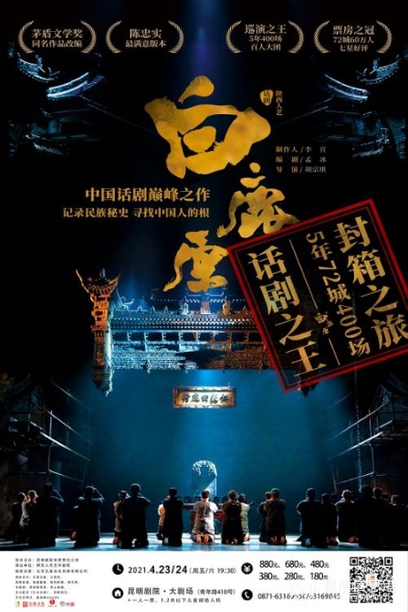 5年72城,400场演出无一差评,观众反馈好评如潮。陕西人艺话剧《白鹿原》2021封箱告别之旅·昆明站开票时间为2月8日,昆明剧院将开启为期一周的“新春早鸟特惠活动”。春暖花开时到剧院,见证中国话剧新巅峰。