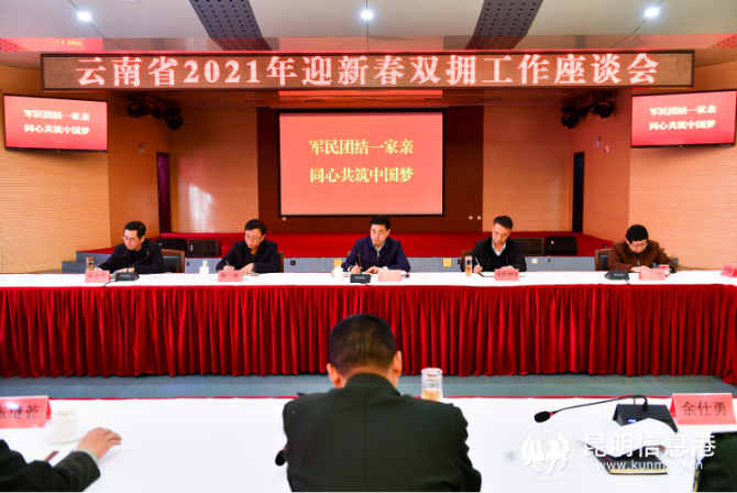 张胜震同志表示,云南是新中国建立后,历经战事最多、持续时间最长、影响最为深远的边疆省份,军爱民、民拥军的光荣传统历久弥新。今年将全面贯彻落实习近平总书记关于双拥工作的重要指示和考察云南重要讲话精神,拿出云南作为、体现云南担当、作出云南贡献、树立云南形象,坚决扛起支持国防和军队建设的政治责任,用心用情用力做好拥军优属和退役军人服务保障各项工作,让广大官兵不为后路担心、不为后院分心、不为后代忧心,让军人成为全社会尊崇的职业!也希望各驻滇一如既往地关心支持云南经济社会发展,军地携手、军民同心,奋力谱写中国梦强军梦云南篇章,以优异成绩庆祝中国共产党成立100周年。