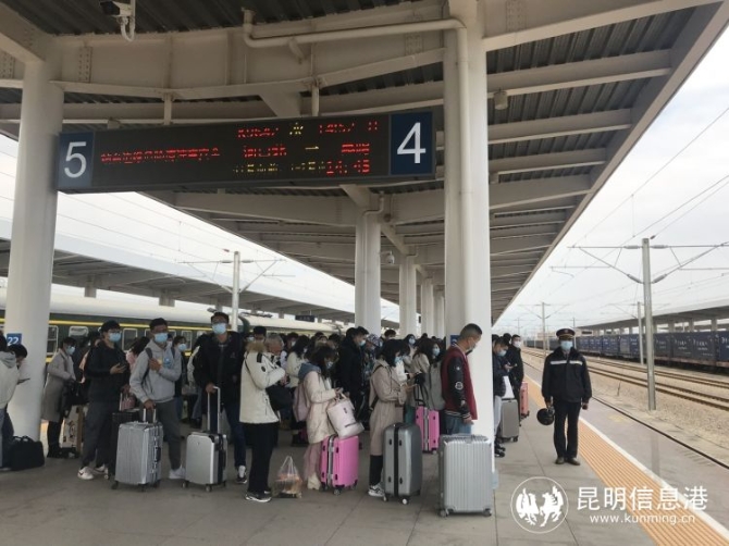针对各高校实行错峰放假,学生客流批次返乡的实际,昆明局集团自2020年12月起,按照属地管理原则,安排昆明、曲靖、大理、蒙自等车站,提前与当地学校联系,了解各学校放假时间和学生团体出行、分散出行需求,采取上门集中办理的方式帮助学生购买火车票,最大程度避免学生在车站聚集。