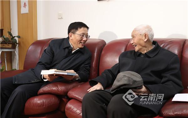 王予波关切询问戴永年院士及家人的生活起居和身体状况,代表省委、省政府感谢他为有色金属真空冶金领域科技创新及相关产业发展作出的重大贡献,认真听取意见建议。王予波说,近年来,云南有色金属与新材料产业充分发挥优势、实现长足发展,离不开以戴永年院士为代表的一代代科技工作者的辛勤努力。当前,我省正全力打造世界一流“三张牌”,打造五个万亿级、八个千亿级产业,新材料产业是其中重要组成部分。希望戴永年院士继续指导科研团队在攻克关键领域和“卡脖子”核心技术上下功夫,在推动产学研深度融合、促进科技成果转化应用等方面不断取得新成效,为云南有色金属产业高端化、智能化、绿色化发展,打造千亿级新材料产业作出新贡献。省委、省政府将始终对院士专家在政治上关怀、工作上支持、生活上关心,切实做好服务保障工作,大力支持高校“双一流”创建和国家重点实验室建设,在全社会营造尊重科学、尊重人才的良好氛围,为推动云南高质量发展汇聚更多智慧和力量。