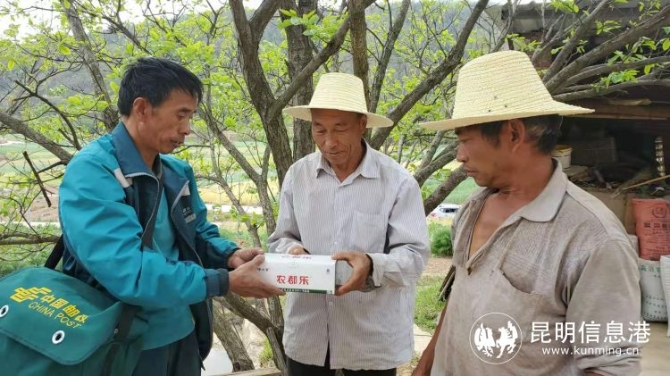 楚雄南华县邮递员为当地百姓配送农资。