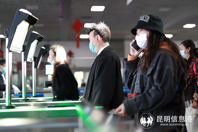 为减少进站、验票证环节旅客与旅客、旅客与工作人员的聚集、接触,昆明局集团在昆明、昆明南、大理等旅客较多的车站开设红外测温通道,增设临时身份证自助制证机等设备,在40个车站的售票、检票、实名验证和客票网络双通道等设备设施,全部实现电子客票业务技术升级改造,新增自助检票终端、人脸对比系统、自助检票闸机等设备837台。特别是疫情常态化防控下,全面实施电子客票,极大地减少了旅客进出站等环节的人工接触,旅客旅行时间大幅节约。