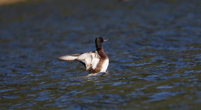 2月14日在云南省腾冲市北海湿地省级自然保护区中拍摄到的青头潜鸭。(云南省腾冲市融媒体中心供图)