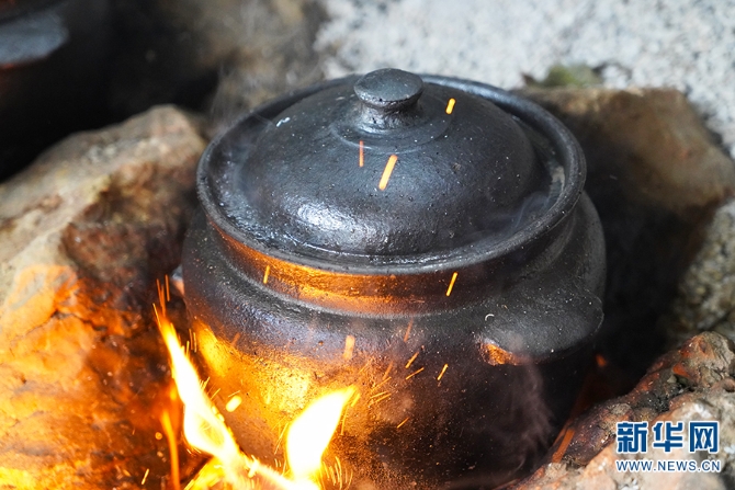 用当地烧制的土罐炖土鸡(2020年12月30日摄)。新华网发(李丹/摄)