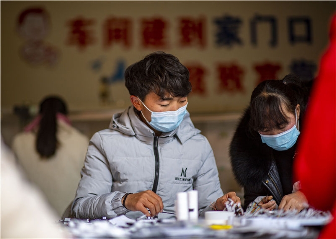 搬迁群众在会泽新城扶贫车间上班(2021年1月14日摄)。新华社记者江文耀摄