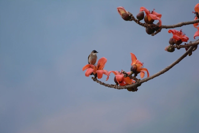 火红的木棉花被植物学家们称为热带三把火(火焰花、木棉和凤凰木)之一。鲜艳夺目的木棉花像一朵朵燃烧的火苗,热烈地在枝头绚丽怒放。