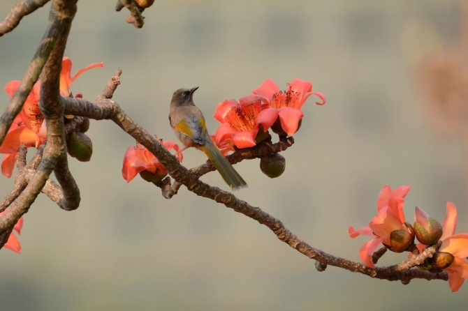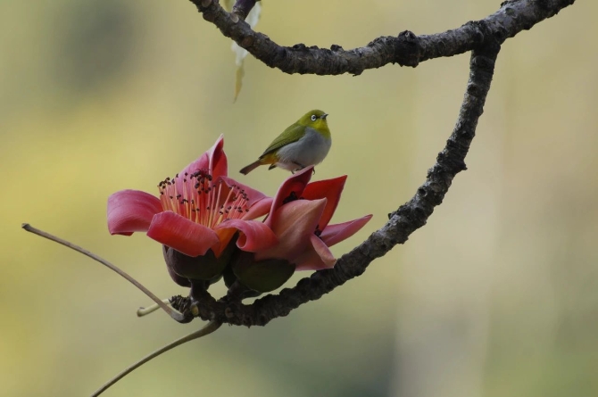 每年春节前后木棉花开时,吸引着众多的动物来啄食花朵、吸食花蜜和为其传粉。木棉树成了蜜蜂、木蜂、倭松鼠、印支松鼠、白喉红臀鹎、灰腹绣眼、长尾缝叶莺、灰卷尾、蓝喉拟啄木鸟等动物的乐园。