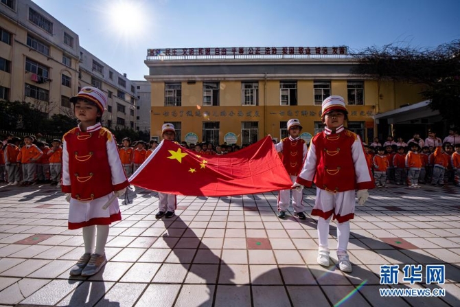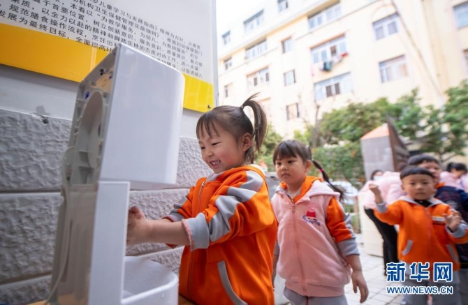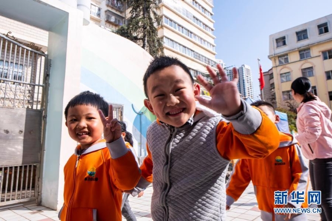 3月1日,阳光明媚,昆明市西山区前卫幼儿园迎来开学第一天。小朋友们回到了熟悉的校园。(记者庞明广 江文耀)