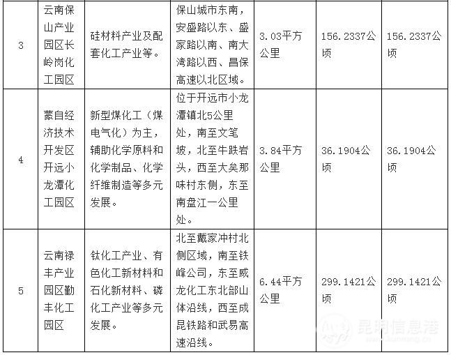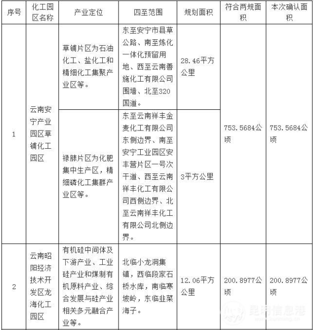 云南省首批化工园区确认名单