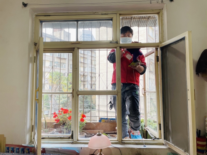 志愿者还来到丹宁里74岁老人冯凤仙家中,带着抹布、洗涤灵等清洁用品,帮老人擦玻璃、收拾屋子。冯凤仙说:“社区志愿者每个月都来慰问我们,帮助我们解决一些生活上的困难,比如出行不方便,社区也会帮我们买到家里,非常感谢政府。”