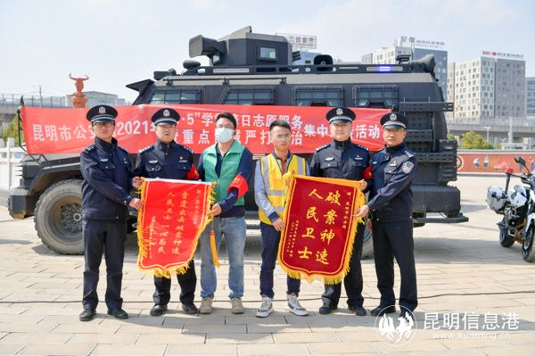 最后,现场宣布了昆明市公安局2021年“3.5”学雷锋日志愿服务暨重点区域严打整治集中宣传活动正式启动。