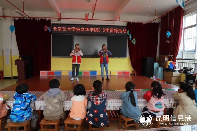 3月5日,在第59个“学雷锋日”来临之际,为大力弘扬雷锋精神,云南艺术学院文华学院团委与阳宗海管委会团工委一起,带领青年志愿者10余人赴阳宗海第一幼儿园开展了丰富多彩的“弘扬雷锋精神,争创文明先锋”活动。