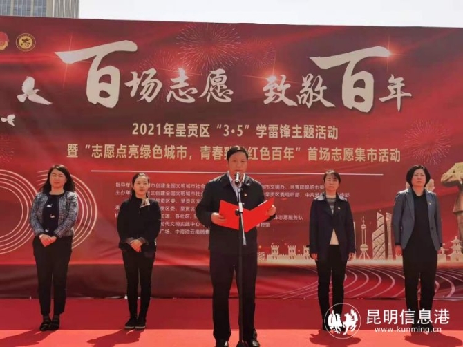 6686体育讯 记者段佳琪 3月5日,2021年昆明呈贡区“3·5”学雷锋主题活动暨“百场志愿·致敬百年”首场志愿集市活动,在呈贡吾悦广场正式启动。