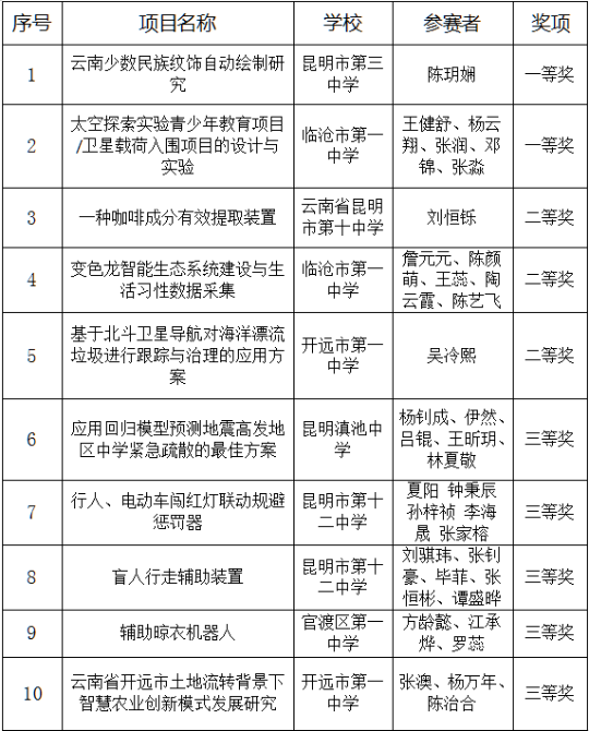 云南省教育厅希望获奖的学校和个人珍惜荣誉,再接再厉,再创佳绩,充分发挥示范引领作用,总结经验成果,做好赛事提升和推广工作。同时,也希望各级教育行政部门和学校要以获奖项目为榜样,以赛促学、以赛促教、以赛促创,把创新教育融入人才培养全过程,大力提升学生的创新精神和创新意识,推动形成新的人才质量观和教学质量观,汇聚起服务高质量发展的青春力量。