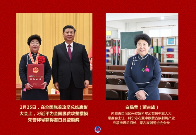2016年以来,白晶莹带动2.6万名妇女参与蒙古族刺绣产业,带领贫困户走出了一条“刺绣脱贫”的新路子,绣出了乡村振兴美好前景。