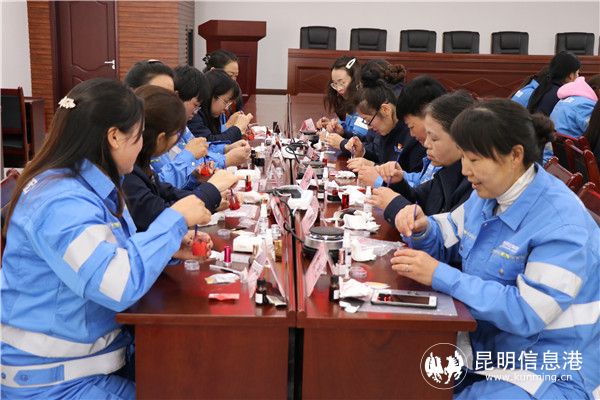 俗话说“手是女人的第二张脸”,学习完护肤,一线职工们还进行了手部按摩和美甲,公司工会的小李表示,考虑到环卫职工每天都是用双手拿着撮箕扫把工作,今天就让大家给双手放个假、美美容,做做手部护理,再涂上美美的指甲油,让一线职工也能有“女神范”。城矿中心的杨大姐负责在居民小区向大家普及垃圾分类知识,每天要用双手分拣居民投来的垃圾,脸上的皮肤白净,手上却粗糙了许多,做完手部护理,看着白嫩了许多的双手,她毫不掩饰的说到:“环卫工作者也有美的权利,让我们一起变美吧!”