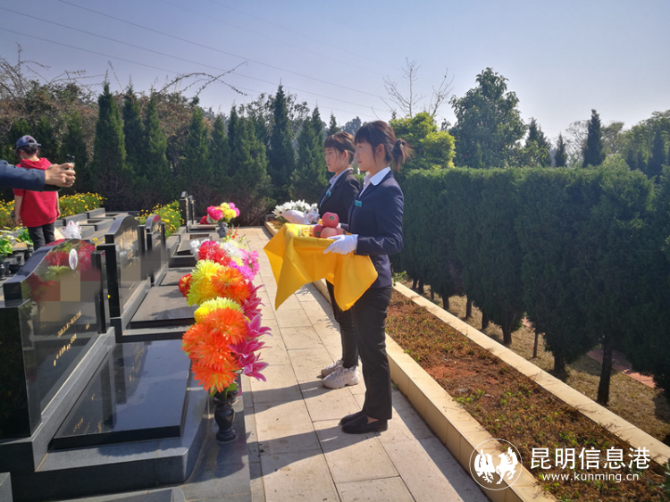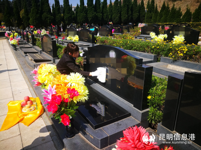 去年因受到疫情的影响,昆明市殡仪馆龙宝山华夏墓园第一次推出“免费代祭扫”服务,即由工作人员代亲属传递爱和思念,代为对墓穴、墓碑进行清扫,敬香、敬献鲜花、水果、糕点等祭品,同时将祭扫过程进行拍照和录像,并反馈至亲属。