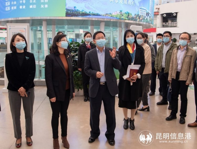 中国(云南)自由贸易试验区昆明片区(昆明经开区)党工委委员、管委会副主任王月冲,招商合作局、工业和科技局、行政审批局主要负责人陪同调研。