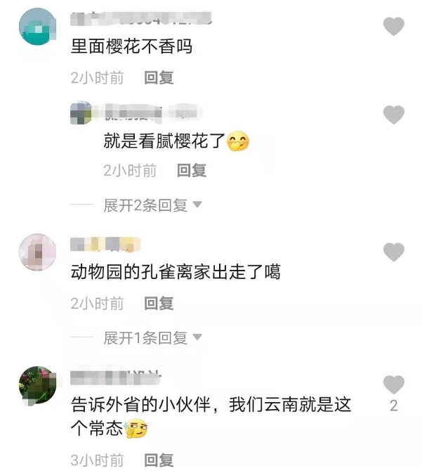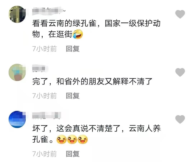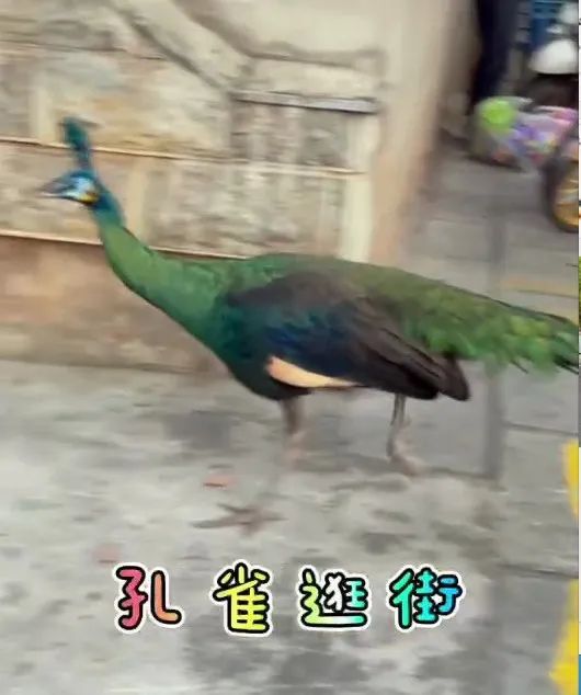 ▲圆通街上逍遥自在遛弯的孔雀