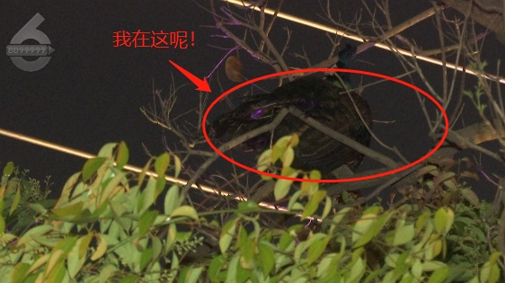 晚上7点半,记者来到圆通大桥滨江西路,只见一只孔雀停在树梢上,一动不动,由于天色已暗,不仔细看根本就发现不了这个小家伙。