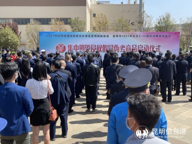当天,在集中销毁现场,官渡区市场监督管理局共出动10辆车,20名执法人员对假冒伪劣商品进行销毁。集中销毁的假冒伪劣商品涵盖涵盖食品、药品、化妆品、医疗器械、餐饮具、口罩、服装、箱包、计量器具、洗涤用品、手机配件、汽车配件、电器配件、家装建材等13个种类,总重约20多吨,价值人民币约300多万元。