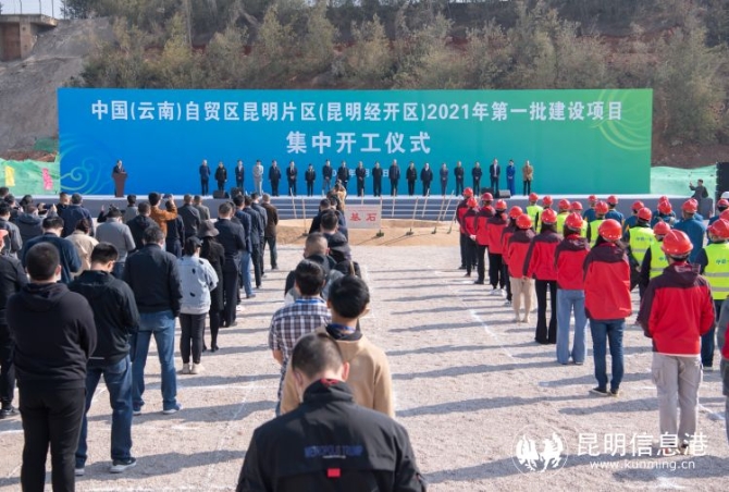 仪式上,伴随着中国(云南)自由贸易试验区昆明片区(昆明经开区)党工委书记赵学锋一声响亮的开工令,2021年第一批建设项目正式启动建设。