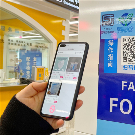 3月16日,记者在乘坐昆明地铁4号线时发现,火车北站进站口摆放了一台口罩自助售卖机。按照操作流程,扫描屏幕上的二维码就可以选择支付2元购买单个口罩。