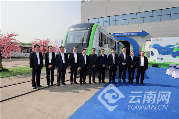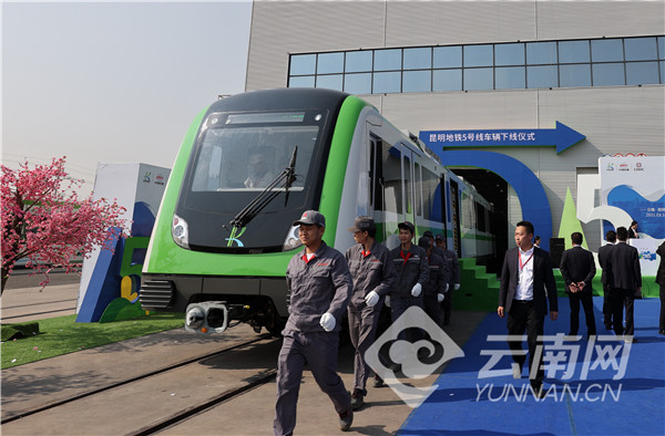 3月16日上午10时18分,随着一声嘹亮的鸣笛,一辆绿白相间的地铁列车缓缓驶出,标志着昆明地铁5号线首列车在昆明中车轨道交通装备有限公司(简称“昆明中车”)下线。这是昆明首款从试制到批量生产完全“昆明造”的轨道交通车辆。
