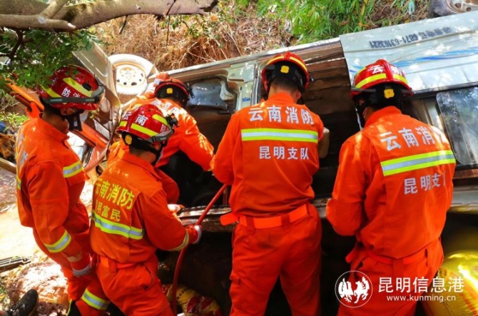 6686体育讯 记者劳学丽 通讯员代华超 3月19日12时许,昆明市富民县九峰山南营村入村路段一辆面包车翻入深沟,驾驶员被困车内,情况万分紧急,急需救援。12时14分,富民县消防救援大队接到群众报警后,立即出动1车7人携带器材装备赶赴现场救援。