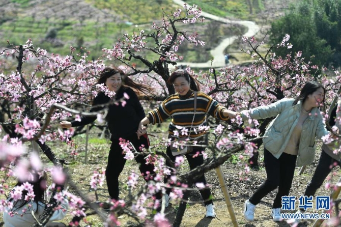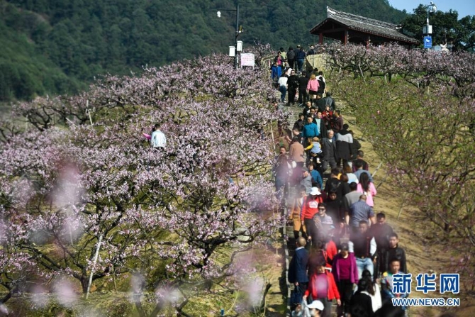 连日来,浙江宁波奉化区萧王庙街道上万亩连片种植的桃花陆续绽放,吸引不少游客到此赏花踏青。奉化于1996年被命名为“中国水蜜桃之乡”,水蜜桃种植面积超过5万亩。