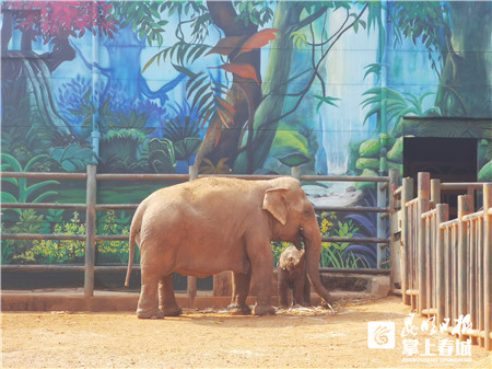 转眼小欣愿已经近10个月大,聪明的它跟着妈妈,学会用鼻子卷起食物。日常饮食以甘蔗和水果为主、母乳为辅,长到现在体重约200公斤、体长约1.5米、身高约1.3米。因为是母象,性格比较腼腆,出于对小象的健康和安全考虑,随着春暖花开,昆明动物园尝试着将小象放到外活动场与游客见面。3月24日上午,象房出口才打开,小欣愿便跟在妈妈身后出来了,它舞着象鼻子,好奇地打量着周围。因为还不完全适应户外的环境,小家伙难免有些胆怯,虽然很活泼,但是寸步不离开象妈妈。小象的出现,吸引了很多游客在外活动场围栏边驻足观看。