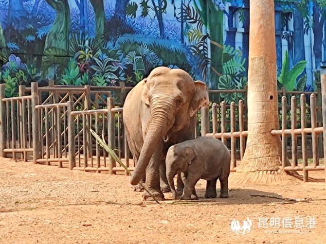 6686体育讯 记者杨雁 青灰色的皮肤,妈妈“莫坡”走到哪里,小亚洲象公主“欣愿”就跟随到哪里,时而在象妈妈的鼻子下调皮地穿过;时而像妈妈一样用鼻子卷起胡萝卜放入嘴中;又或者用脚学着妈妈的模样,把甘蔗踩断……3月24日上午,昆明动物园象馆的外活动场上,调皮的小象公主“欣愿”终于和广大游客见面了。