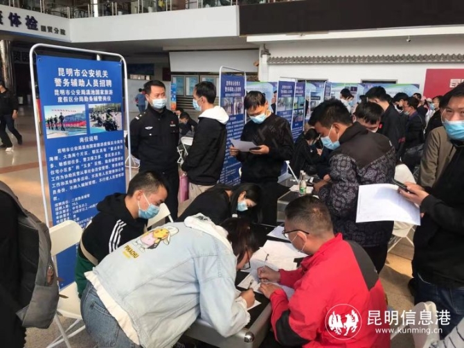 招聘会由昆明市公安局22家单位提供2022个警务辅助岗位,据统计,当天1000余名求职者到场应聘。通过洽谈,200余名到场的退役军人有97名现场达成了就业意向。
