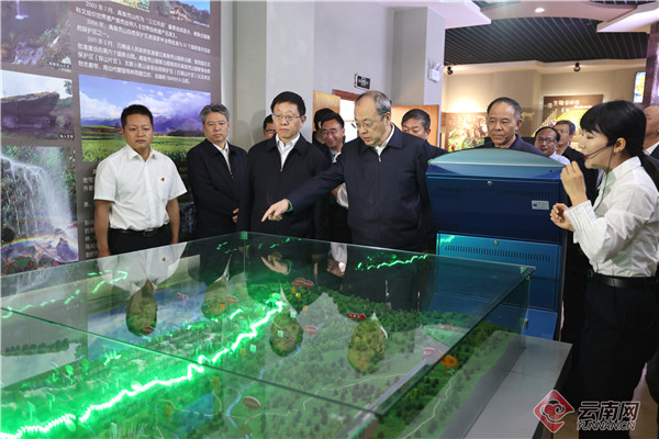 阮成发、王予波一行在高黎贡山国家级自然保护区高黎贡山宣教中心调研。记者 周灿 摄