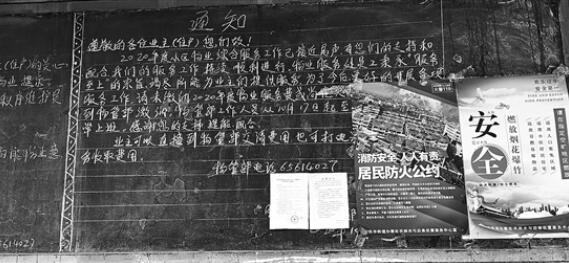 某小区公示栏,只有催交物业费的通知。