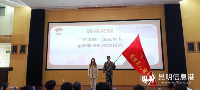 活动中,昆明学院校领导为“雷锋班”授旗,2018级雷锋班班主任及全体学生、新一届雷锋班班主任及全体学生庄严许下承诺,营造“雷锋精神人人可学、奉献爱心处处可为”的良好校园风尚,传承和弘扬雷锋精神,推动志愿服务活动常态化,并成立“学雷锋”退伍军人志愿服务队、成立“学雷锋”党支部。