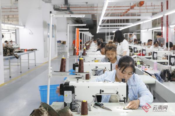 怒江州职教中心扶贫车间,吸纳进城安置的易地扶贫搬迁群众就近务工,促进农民向产业工人转变。谢宇/摄
