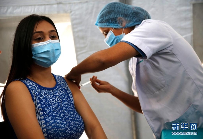 4月7日,在尼泊尔加德满都一家医院,一位女子正在接种新冠疫苗。新华社发(苏拉韦·什雷斯塔/摄)