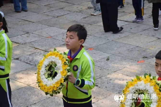 当天,恰逢踏青、祭扫的时节,黑龙潭革命烈士陵园摆满鲜花,引来不少市民前往缅怀。盘龙、官渡等各校师生也纷纷前来祭扫、默哀、缅怀革命先辈。师生们通过敬献花圈,聆听烈士敢于人先、不畏牺牲的故事,感受烈士们的坚定的理想信念。