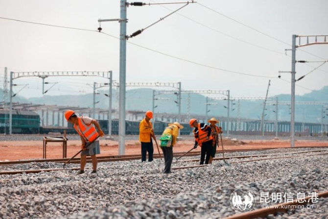 据了解,为确保中老铁路国内段年底与境外段高质量开通运营,中国铁路昆明局集团抽调精干力量,组建专业施工队伍,倒排施工计划,优化轨道精调精整作业流程、作业标准、质量控制,以高铁的标准对线路开展施工,全力打造160km/h 客货共线铁路轨道标杆工程。目前,各施工队伍已陆续抵达施工点。