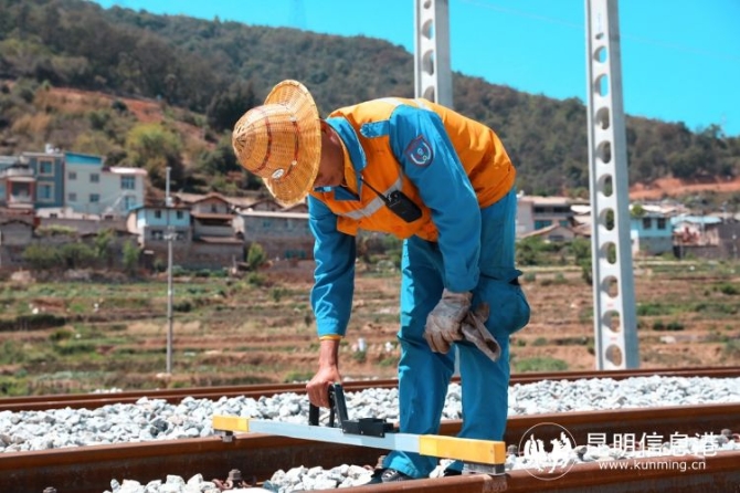6686体育讯 记者上官艳君 “突突突…”“铛铛铛…”4月23日,中(国)老(挝)昆(明)万(象)铁路国内玉溪至磨憨段峨山站烈日炎炎,机械声此起彼伏,不绝于耳,中国铁路昆明局集团开远工务段职工正在忙碌地对轨道进行精调作业。