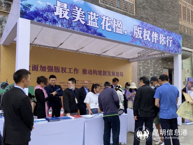 为创新版权宣传形式,打造宣传亮点,用大众最喜闻乐见的方式传递版权保护的理念,此次活动选在蓝花楹最美打卡地。4月底,蓝花楹进入盛花期,昆明市教场中路“蓝花楹主题公园”附近一条街,蓝紫色的花海将这个城市装点得如梦如幻,引得市民和游客纷纷前往拍照。活动在人流量较多的昆明“网红打卡点”开展版权登记现场服务,方便著作权人登记版权,同时向社会大众普及版权知识,讲解版权线上登记的方法和流程。前来了解的行人络绎不绝,宣传活动取得了预期效果。