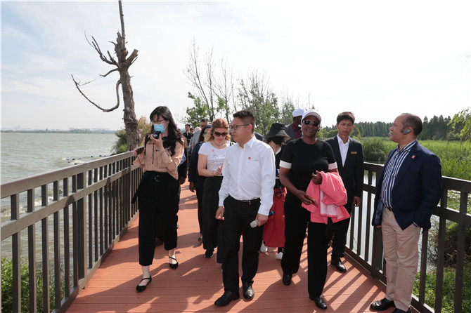 4月24日,外国驻华使节代表团在昆明捞鱼河国家湿地公园参观了解湿地公园管理及滇池治理的情况。周灿/摄