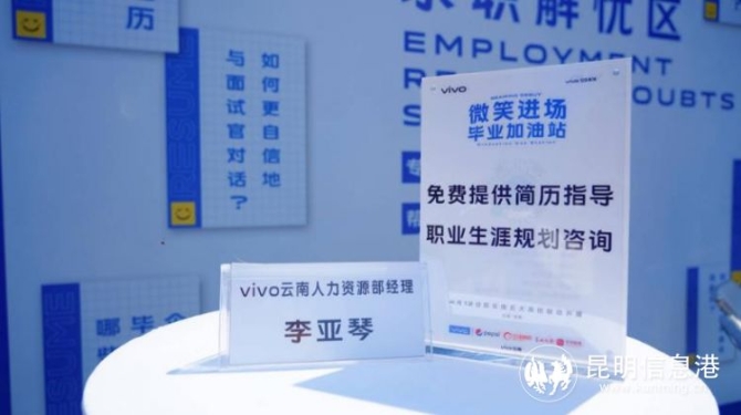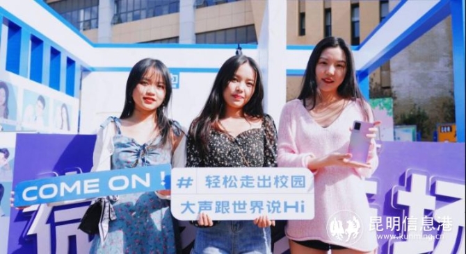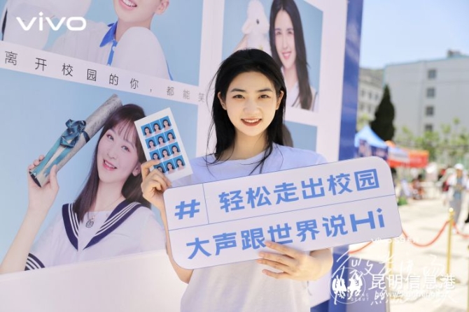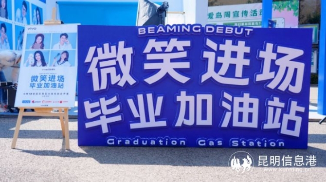 在昆明站,vivo云南联合云南大学、云南财经大学、西南林业大学、云南师范大学商学院四大学校开展了“微笑进场,毕业加油站”活动。