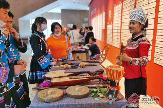 展览形式采用动静结合、立体展示,以实物为主,展出民族文化精品图书、影视作品、工艺品、文创产品等实物701件,同时辅以照片、图表、视频、传承人表演、理论研讨等内容,充分展现了“十三五”期间云南在民族文化强省建设中取得的累累硕果、文化惠民为各族群众精神文化生活增添的靓丽底色,以及云南多元文化互鉴融通、民族关系和谐融洽的生动画卷。
