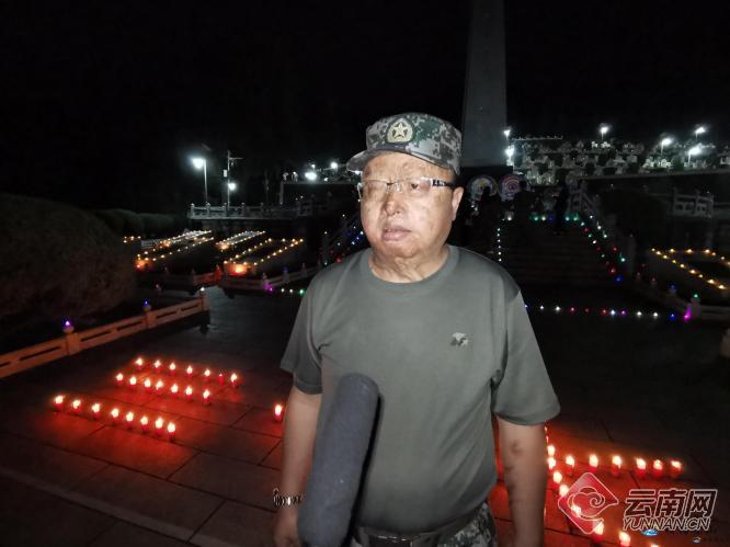 来自贵州省开阳县的杨晓琪是曾在老山战斗过的老兵,每年的4月27日晚他都会来到麻栗坡烈士陵园,为长眠在这里的960位英烈做一件事:点亮蜡烛,让烛光的温暖扮亮这座英雄聚集的山头。对于战友,他心中有着深深的眷恋,在为战友们摆放蜡烛时,他喊道:“兄弟们,回家了!”。